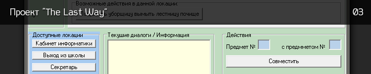"The Last Way: RPG", оно же "Школа №347: Последний путь" — мой первый робкий шаг в области геймдевелопмента. Не смотря на то что в целом игру можно назвать квестом, в ней присутствуют и ролевые составляющие. О том что, куда и зачем можно почитать в прилагаемом readme. Скачка по клику.