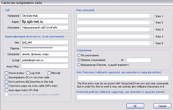 Откроется окно свойств избранного хаба. Рассмотрим его поподробнее.