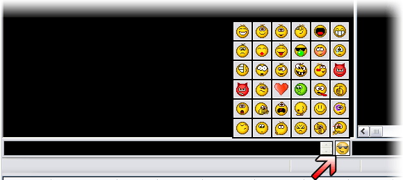 После всех манипуляций можно отправить сообщение посредством нажатия Enter - так же как и простое однострочное сообщение. На разных хабах можно встретить разное ограничение на количество строк в мноострочных сообщениях. [Q] Ясно. А как обстоят дела с графическими смайликами? Я часто их использую в ICQ и форумах и хотел бы использовать и здесь. [A] Чтобы использовать графические смайлики вам нужно нажать на желтый смайлик справа от строки ввода.
