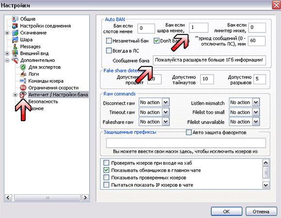 Слева, в пункте "Дополнитьельно" выберите подпункт "Анти-чит / Настройки бана". Взглянем на область настроек