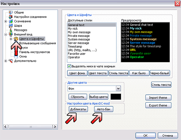 "Дубликаты" и "Авто-бан". При нажатии на них - откроется стандартное меню выбора цвета. Пару слов